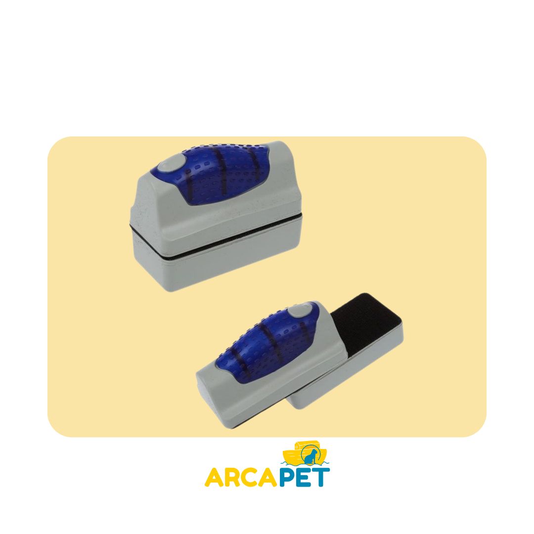 mediano es ideal para limpiar el lado interno de los vidrios del acuario sin la necesidad de meter las manos dentro. Compuesto por dos partes unidas por un potente imán. Mientras usted mueve una parte por fuera del acuario la otra parte que quedó en el interior va removiendo toda la suciedad pegada en el vidrio.